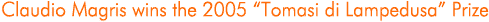 | The winner of the third edition of the Tomasi di Lampedusa literary award is Trieste author Claudio Magris for his latest novel Alla cieca (Blindly), published in Italy by Garzanti. |